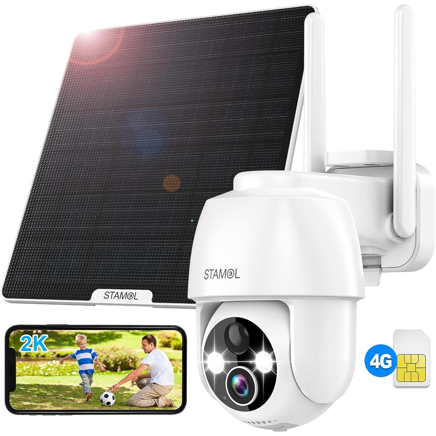 The STAMOL Battery Powered Security Cameras offer 4G LTE connectivity, making them perfect for remote locations without WiFi. The built-in 9000mAh battery and 5W solar panel ensure continuous operation.