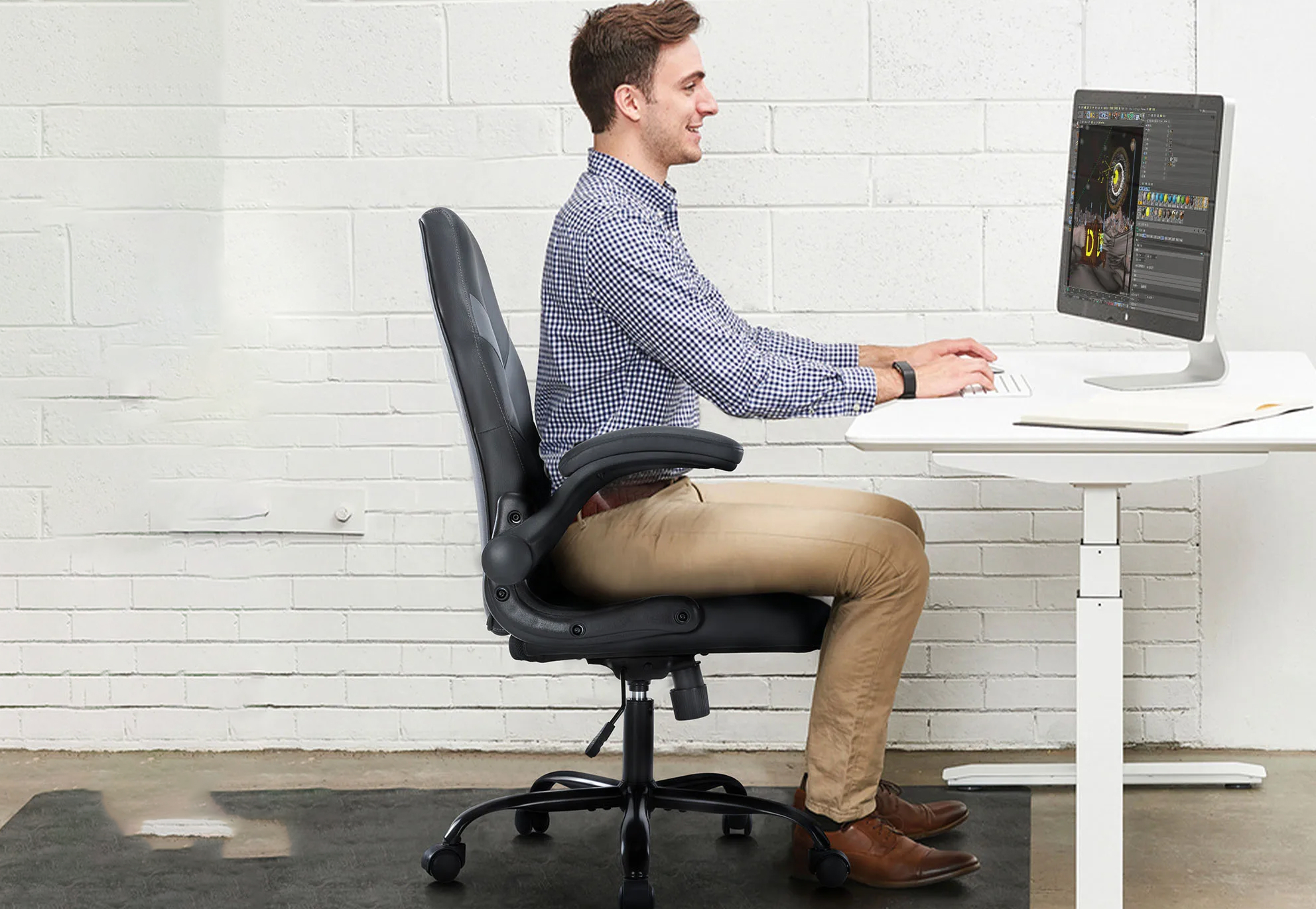 What sets this chair apart is its versatile adjustability. The height ranges from 18 to 22 inches, and the 90° flip-up armrests save space while providing arm support. Need a break? Activate the 45° rocking mode to unwind. 🔄 The 360° swivel and silent casters make movement effortless without damaging floors.